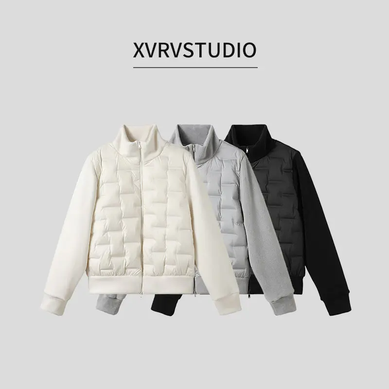 XVRV羽绒服90鸭绒秋冬运动服女摇粒绒拼接纯色保暖百搭上衣外套