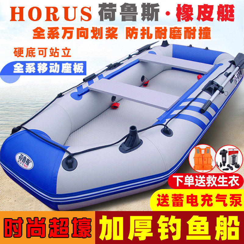 荷鲁斯橡皮艇加厚钓鱼船2/3/4/5人充气船冲锋舟气垫船硬底皮划艇