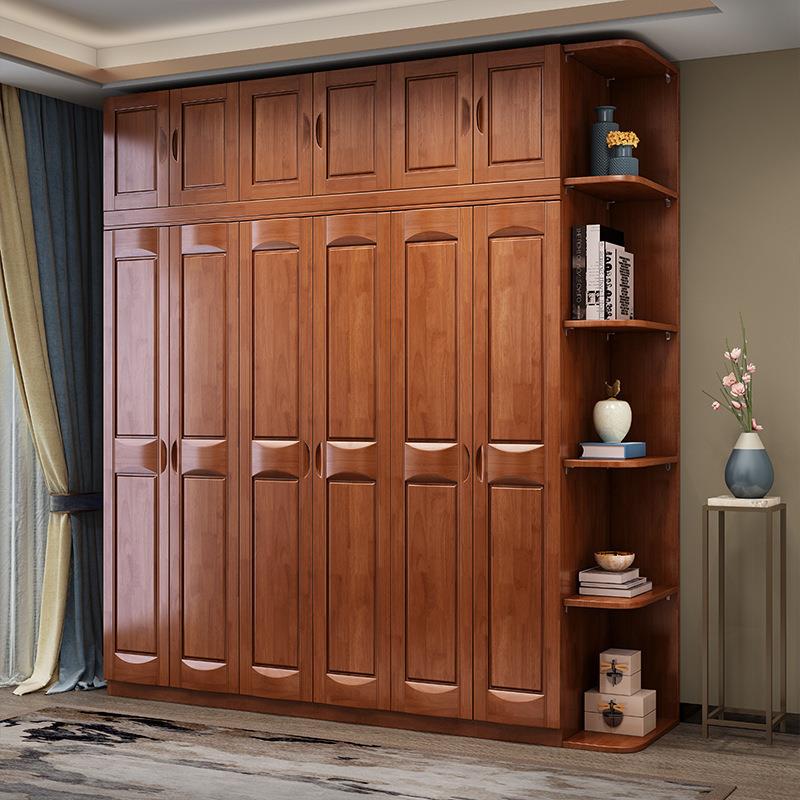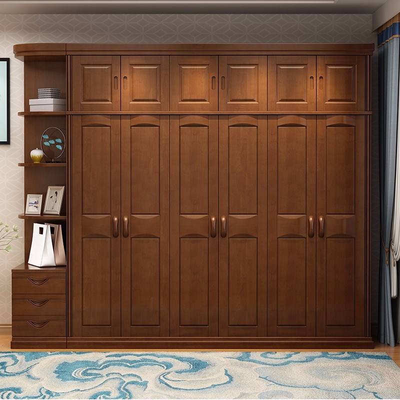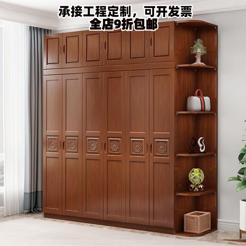 中式胡桃木衣柜三门四门五门六门现代实木衣橱小户型储物柜带顶柜