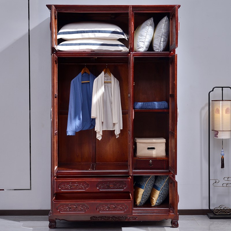 全实木衣柜家用卧室金花梨木大衣柜三门四门中式明清古典仿古家具
