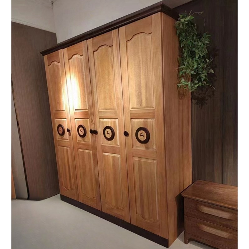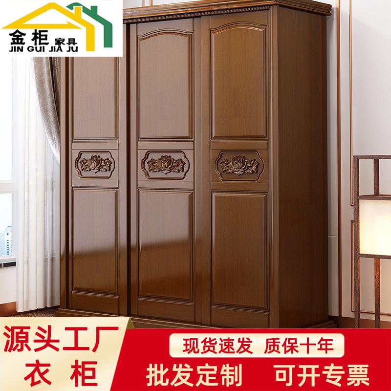 中式实木衣柜三门四门五门六门原木平开卧室柜子经济型储物大衣橱