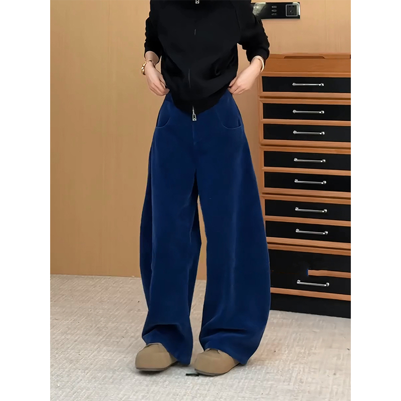 蓝色气质灯芯绒休闲弯刀裤女2025秋冬新款简约老钱风时尚阔腿显瘦
