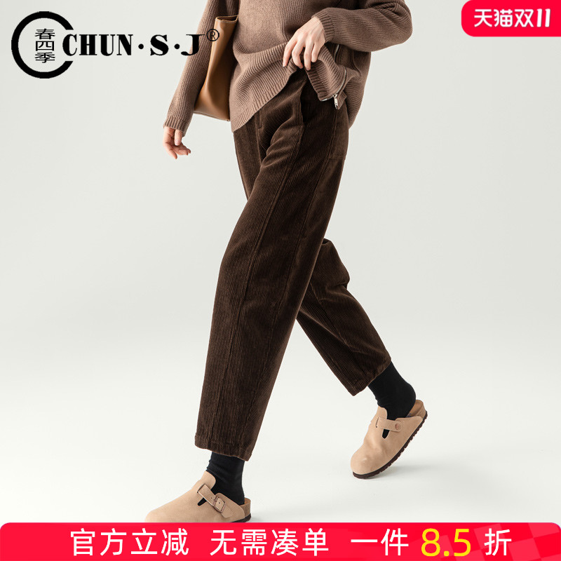 捡漏折扣灯芯绒裤子新款秋冬外穿小个子加绒加厚雪尼尔束脚卫裤女