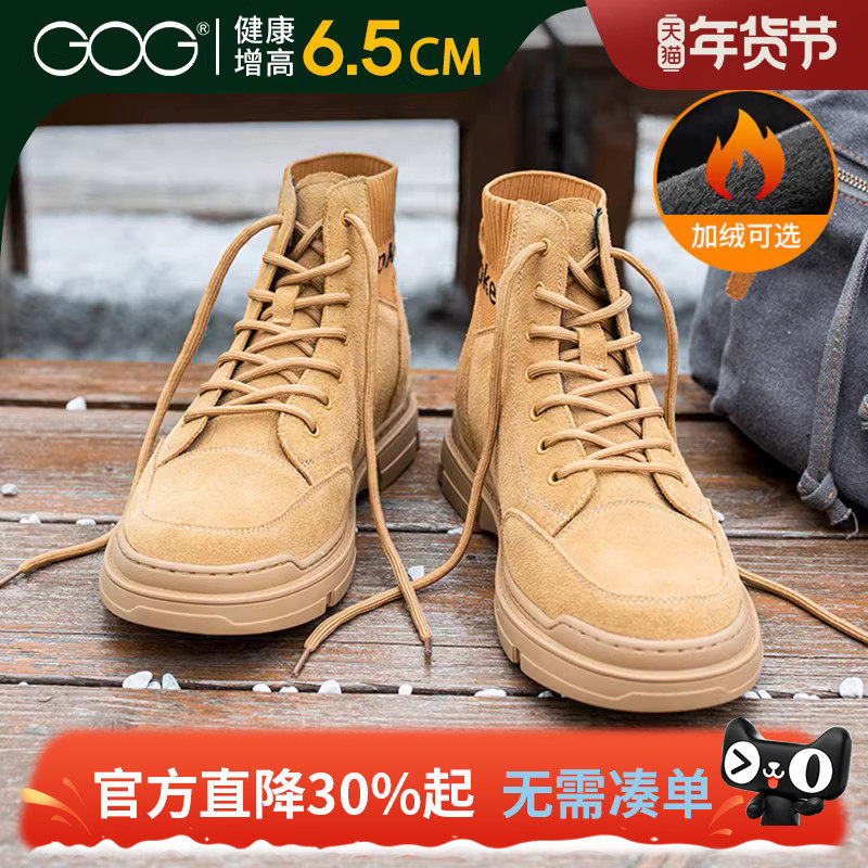 高哥增高鞋男工装靴休闲加绒保暖大黄靴时尚舒适男鞋内增高马丁靴