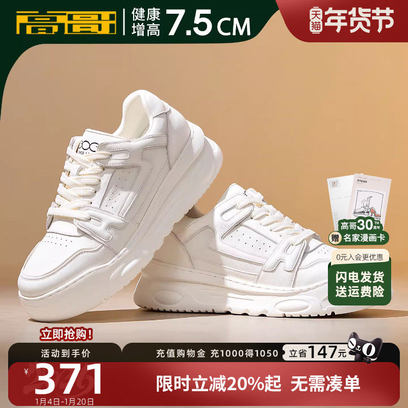 高哥增高小白鞋真皮厚底休闲男鞋子冬季轻便运动鞋男士内增高板鞋