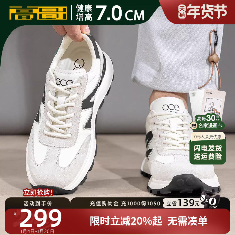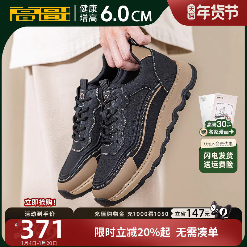 高哥增高休闲鞋厚底新款牛皮男鞋轻便徒步户外鞋男士内增高运动鞋
