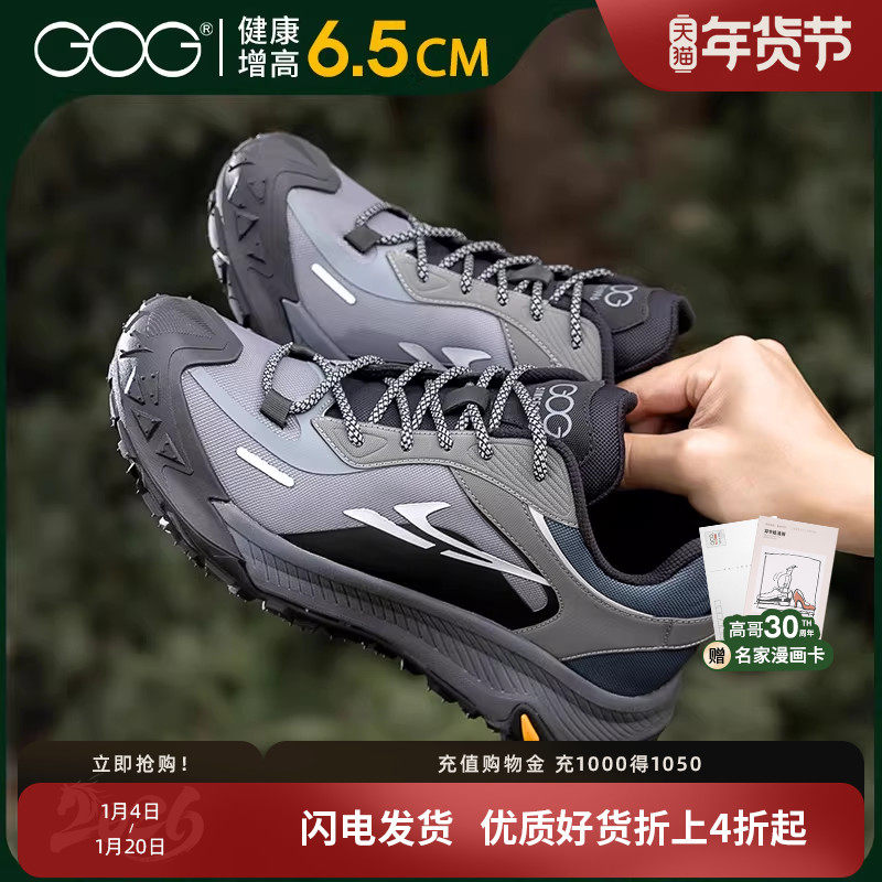 高哥内增高休闲鞋厚底2026新款男鞋舒适户外运动鞋轻便增高工装鞋