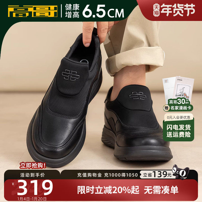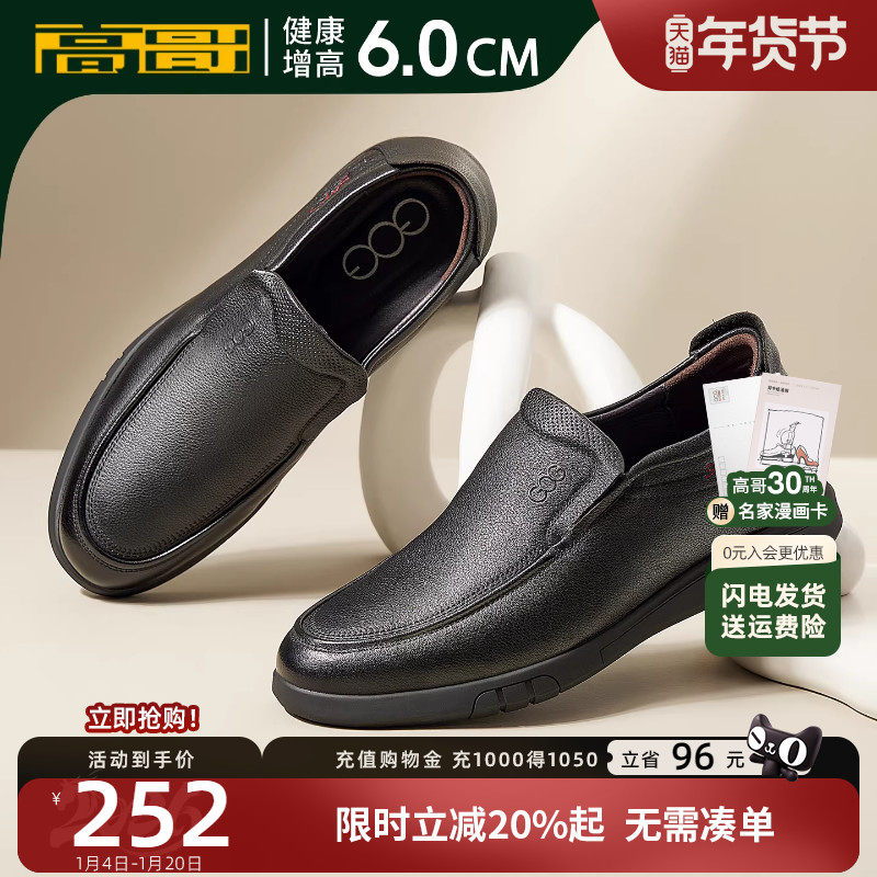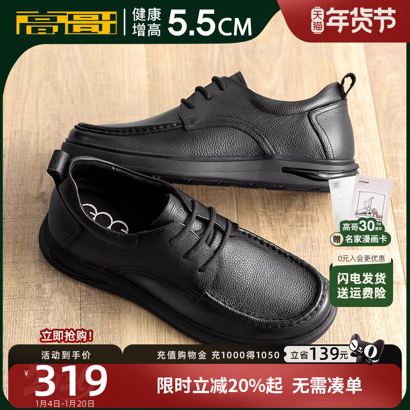 高哥增高休闲皮鞋男款真皮软面软底男鞋冬季新款爸爸鞋内增高鞋子