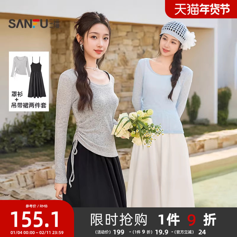 三福连衣裙套装2026新款春季气质罩衫吊带长裙子两件套女装515281
