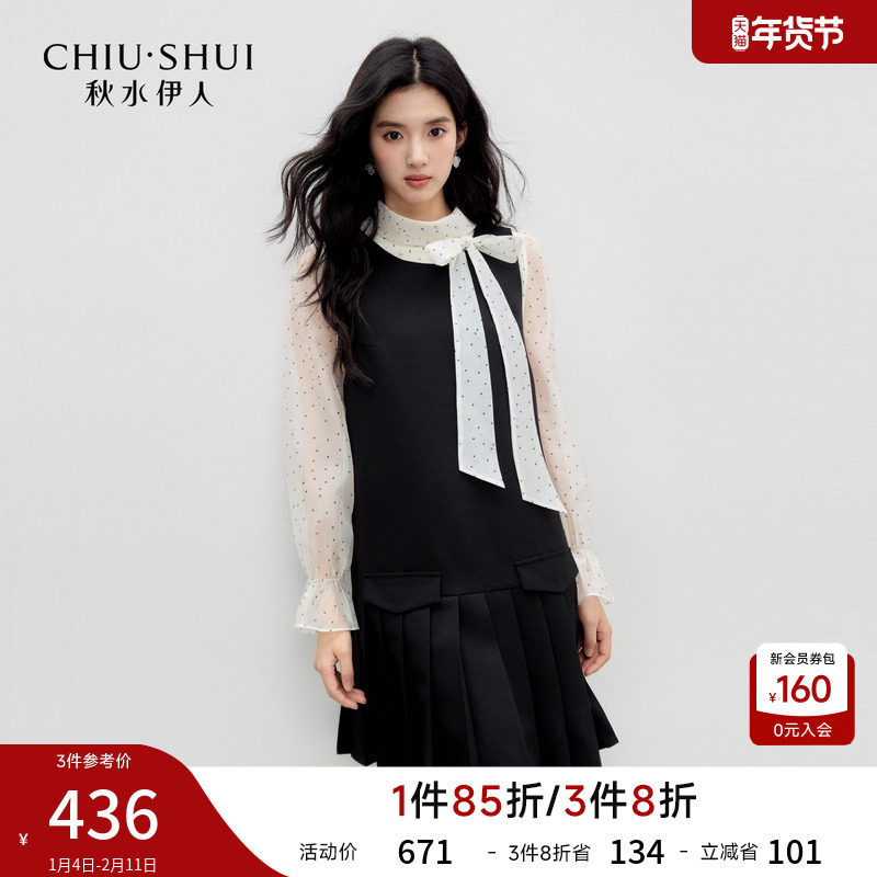 秋水伊人连衣裙两件套2026年春季新款女装通勤蝴蝶结休闲裙子套装