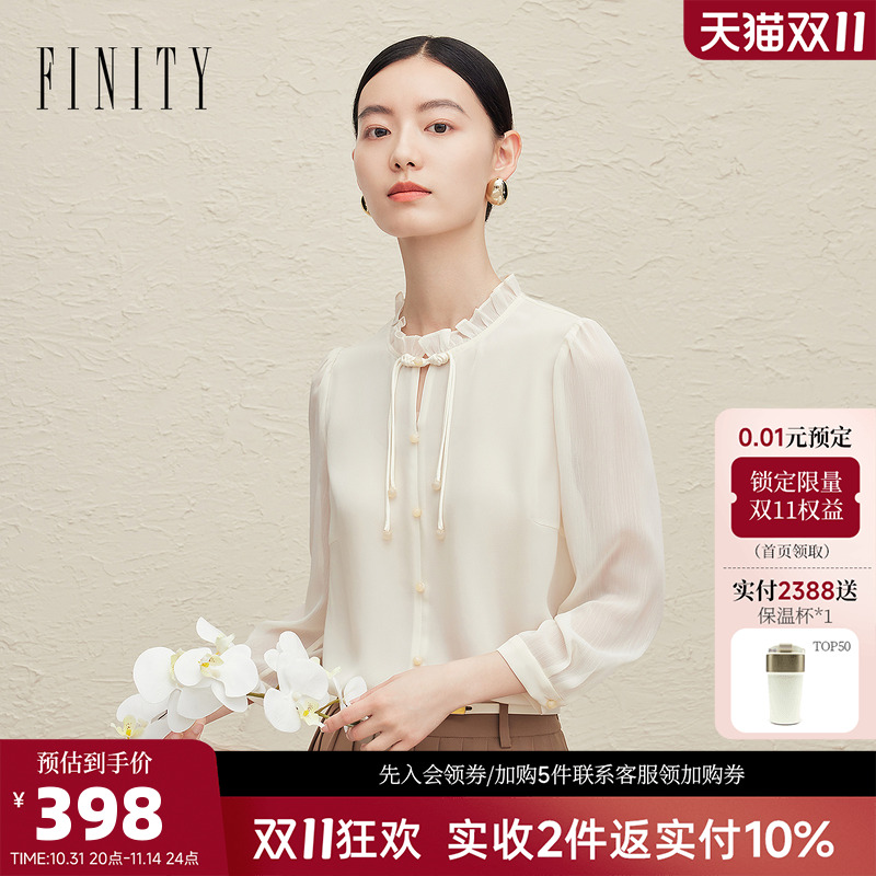 艾诺丝雅诗法式气质木耳边立领雪纺衫女长袖系带上衣秋30825042