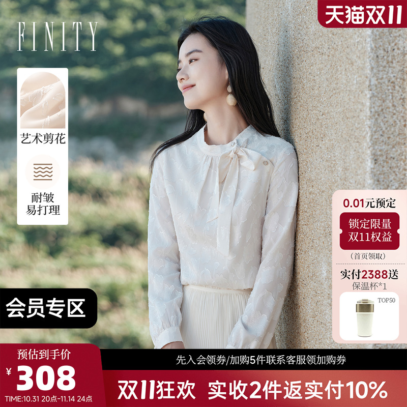 菲妮迪法式飘带立领雪纺衫2024年秋季新款剪花名媛气质优雅上衣女