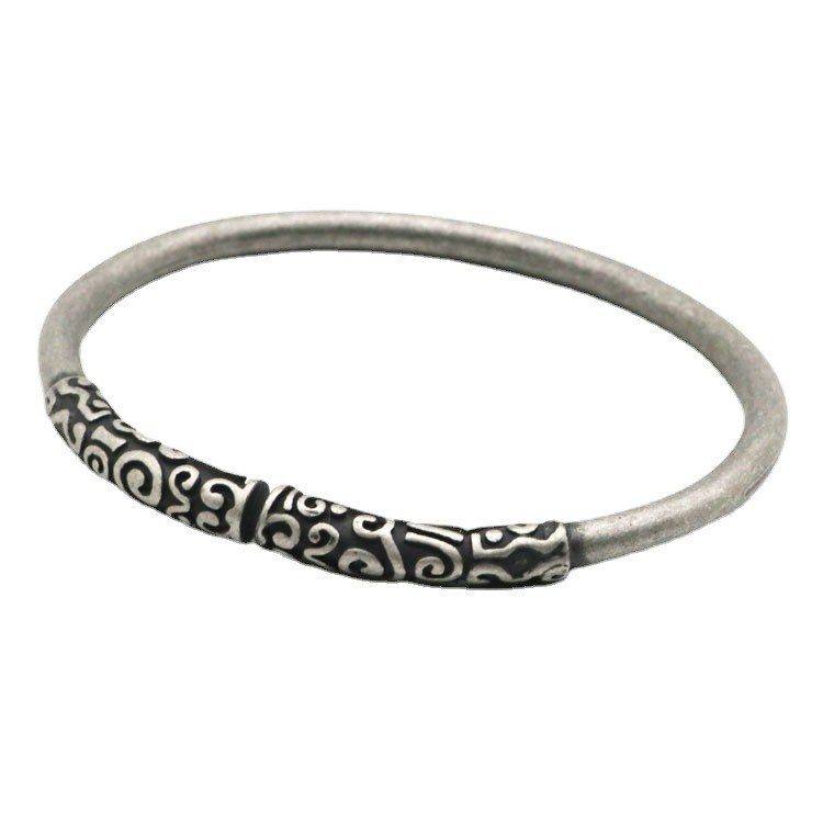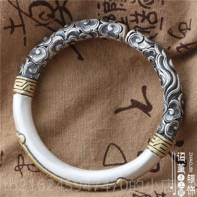高档祥居黑话悟空云南手工制作情侣古覆做旧浮雕神金箍棒手镯.银