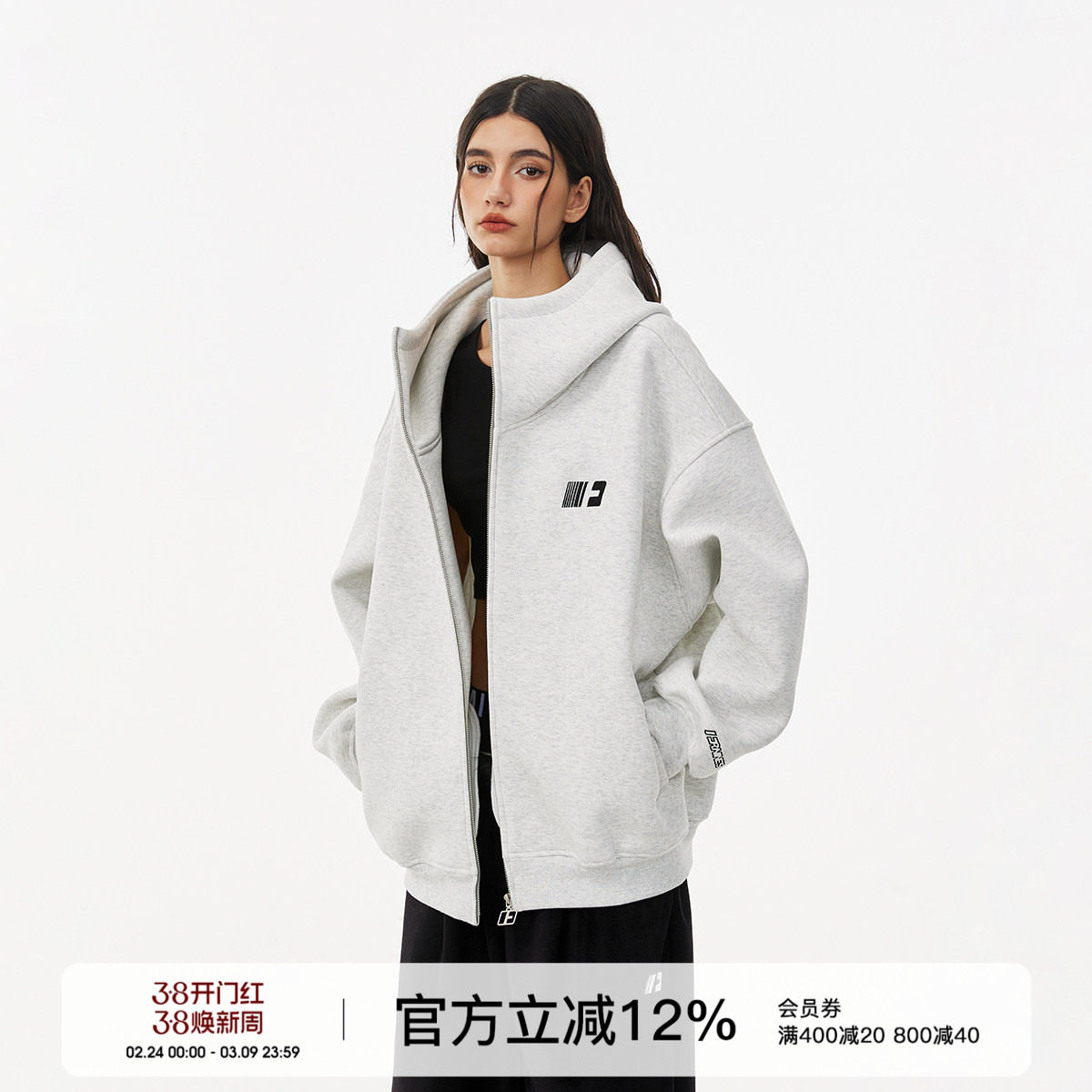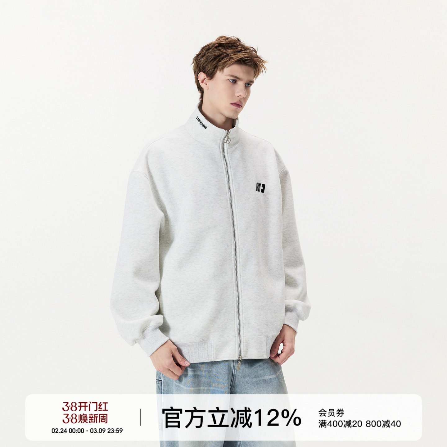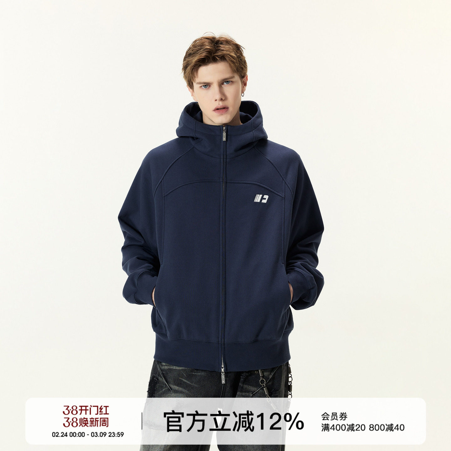 - 男款拉链加绒卫衣