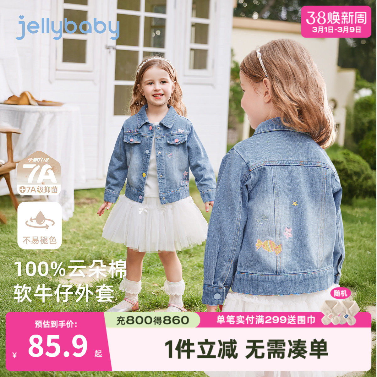 - 刺绣牛仔短外套 女