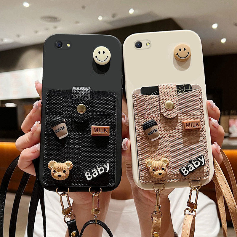 送手绳oppor9s手机壳雪碧小熊r9splus女款侧边带图案oppor9m液态硅胶r9t挂绳全包镜头磨砂保护套防摔新款个性
