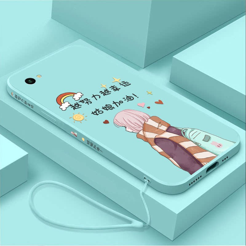姑娘加油oppor9s手机壳软壳r9splus液态硅胶r9tm越努力越幸运r9sk超薄挂绳镜头全包ins女款保护套外壳防摔潮