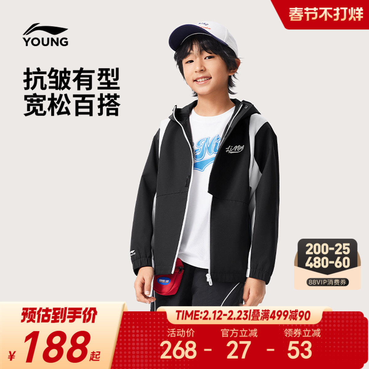 李宁儿童外套风衣梭织衣服男孩新款秋冬款男童装中大童青少年秋装