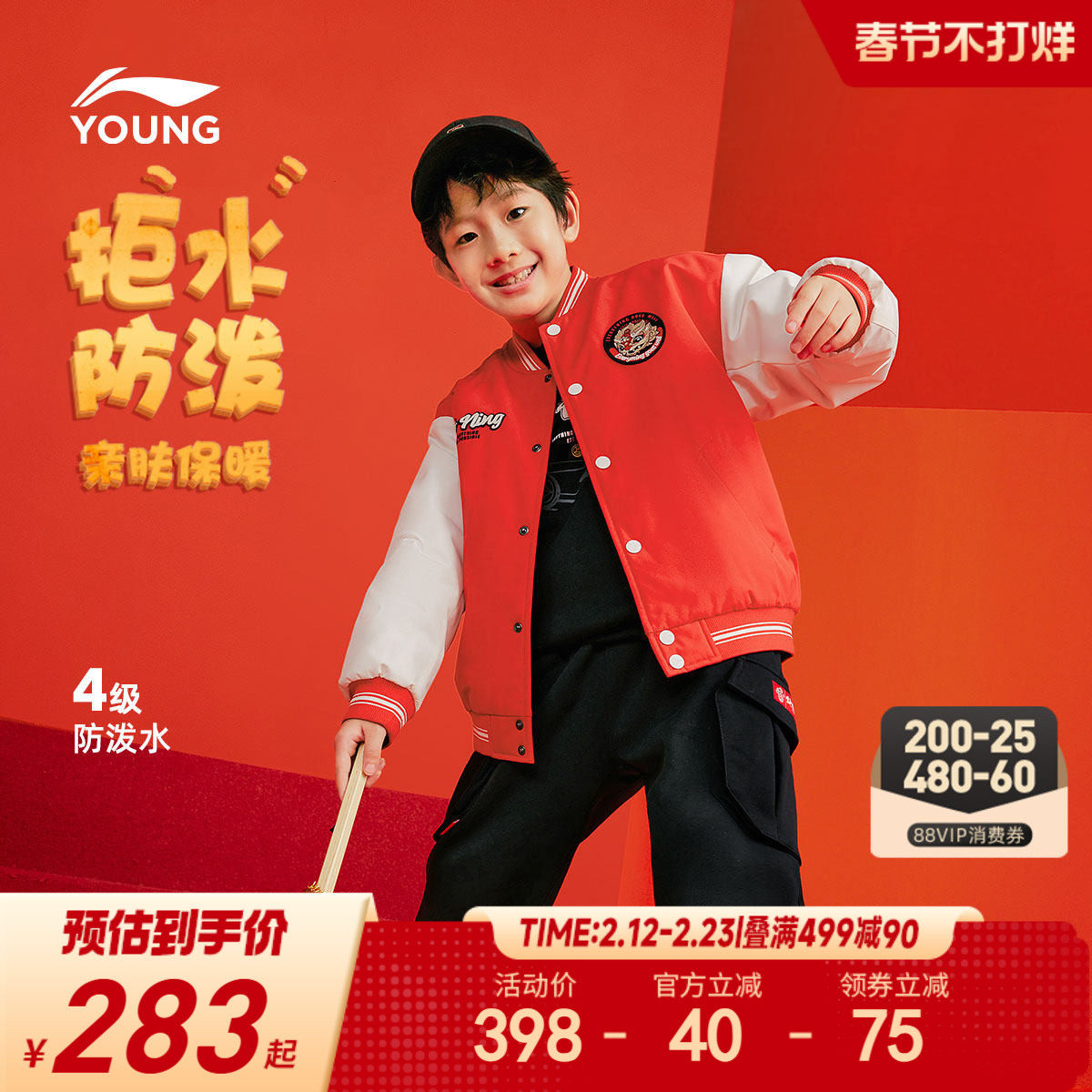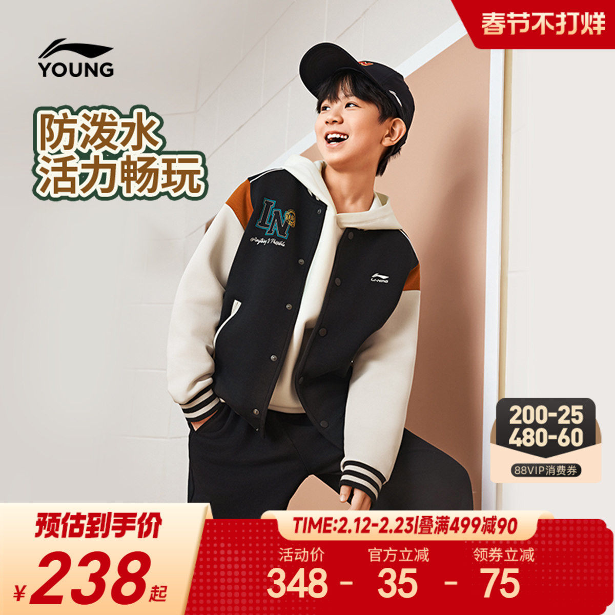 李宁新年款棉服棒球服男孩新款秋冬款衣服男童装中大童青少年秋装