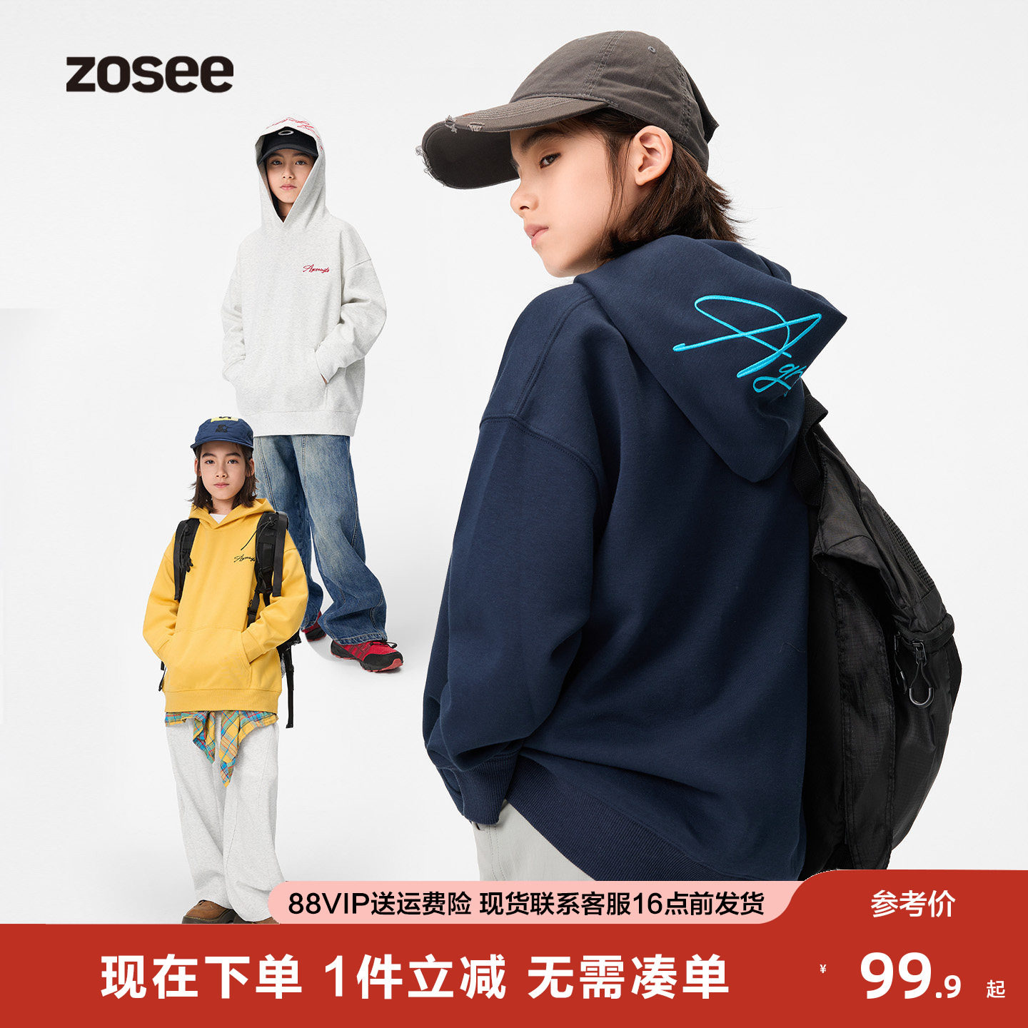 男大童卫衣连帽青少年秋装儿童上衣2026新款初中生潮酷印花春秋
