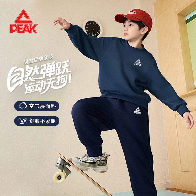 匹克童装男童秋套装2026新款藏青色卫衣秋季儿童运动服青少年秋装