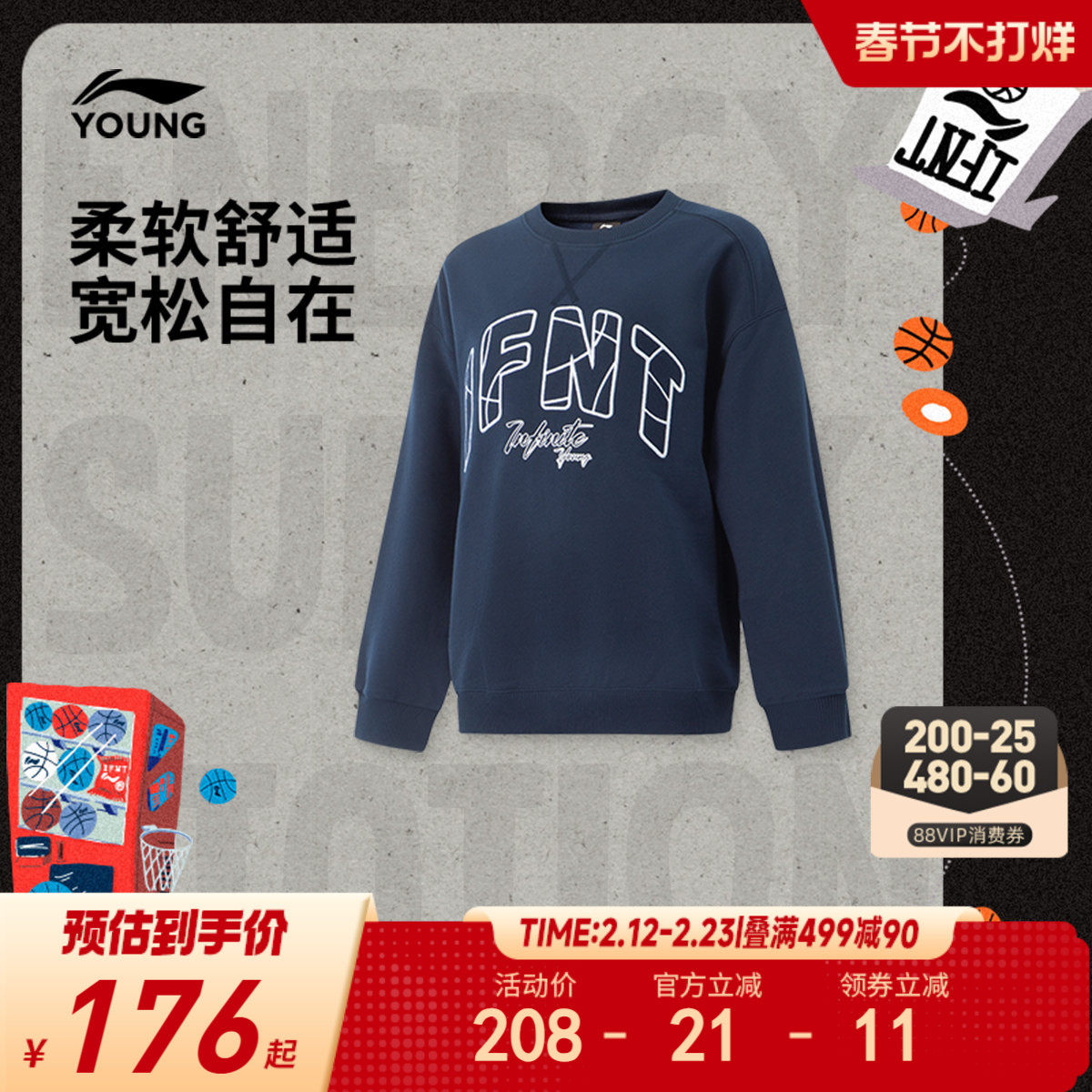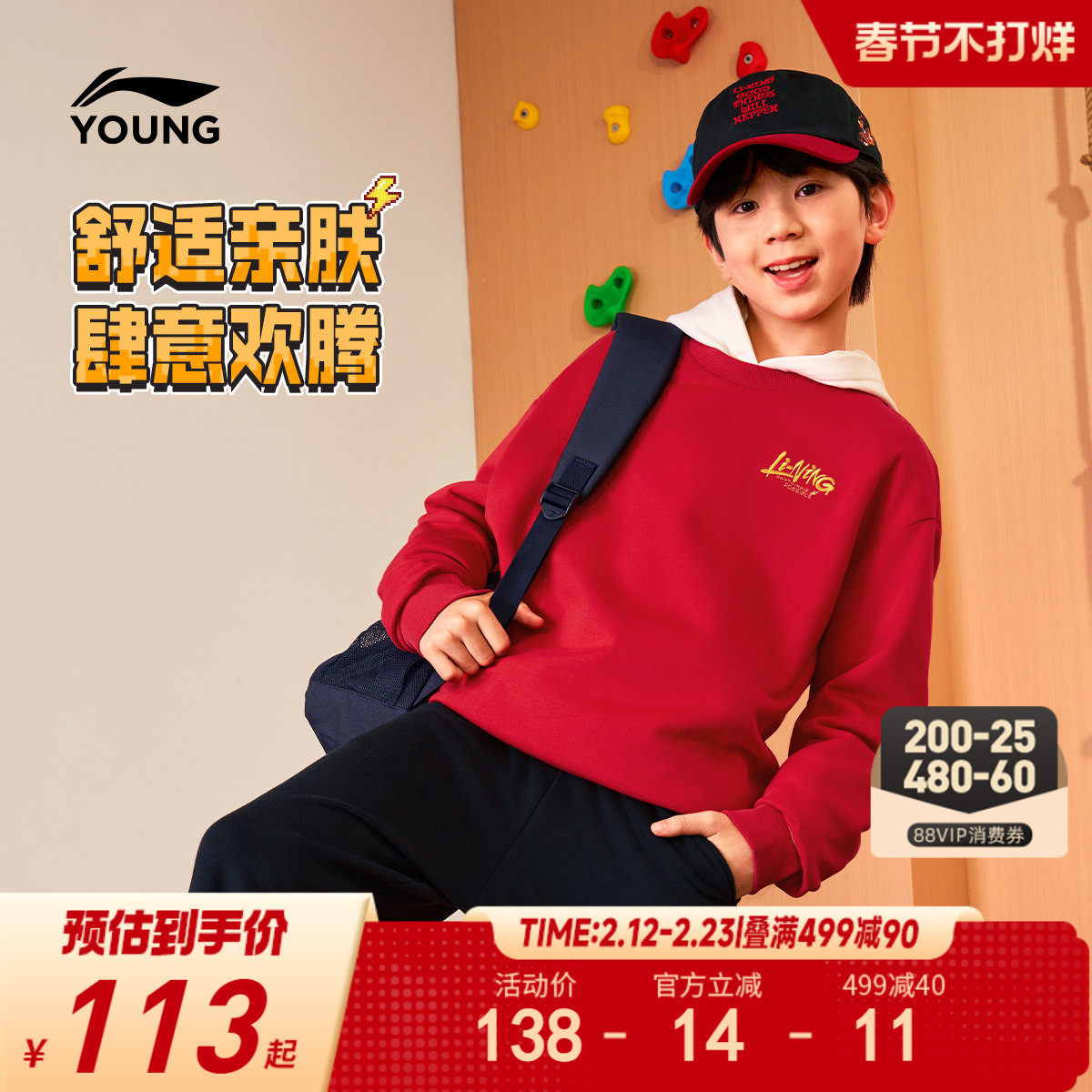 商场同款|李宁儿童宽松卫衣男孩新款秋冬款男童装篮球青少年秋装