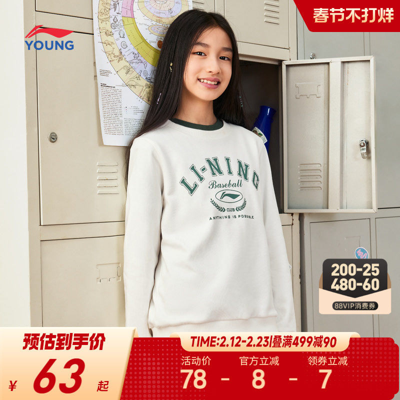 李宁儿童卫衣男孩新款秋冬款春季女童装中大童男童长袖青少年秋装