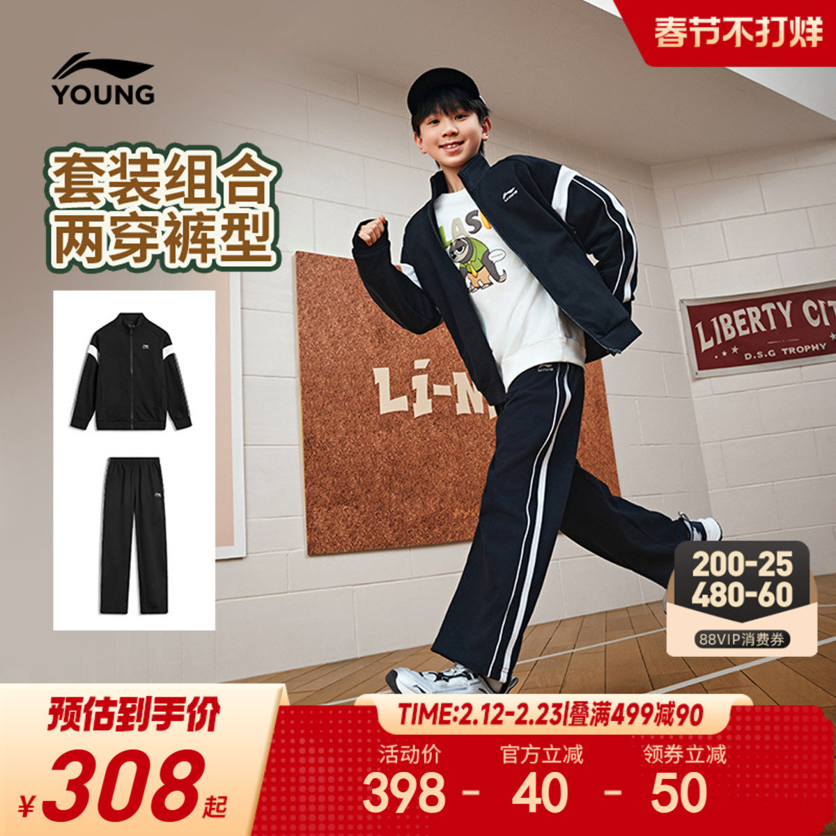 李宁儿童外套运动套装男孩新款秋冬款男童装女童中大童青少年秋装