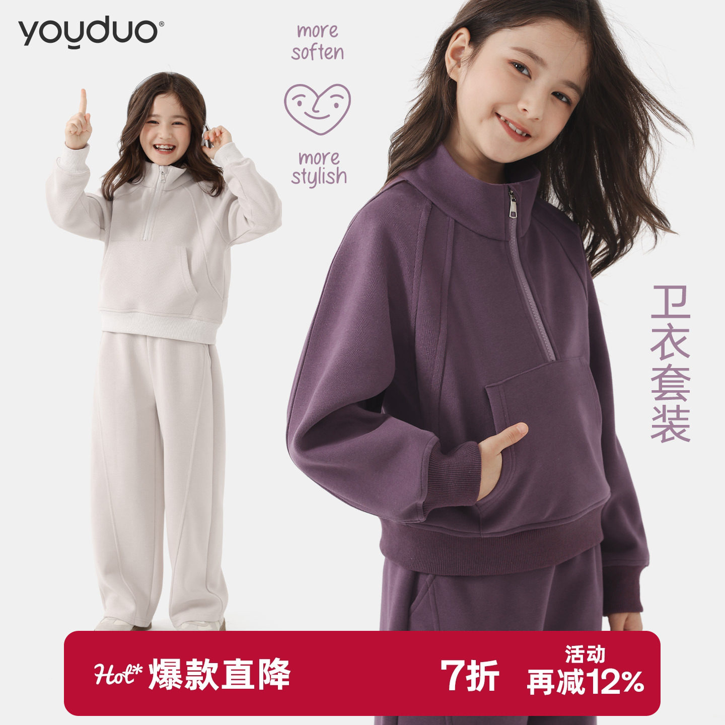 女童套装春季2026新款儿童连帽休闲卫衣运动裤青少年秋装女大童装