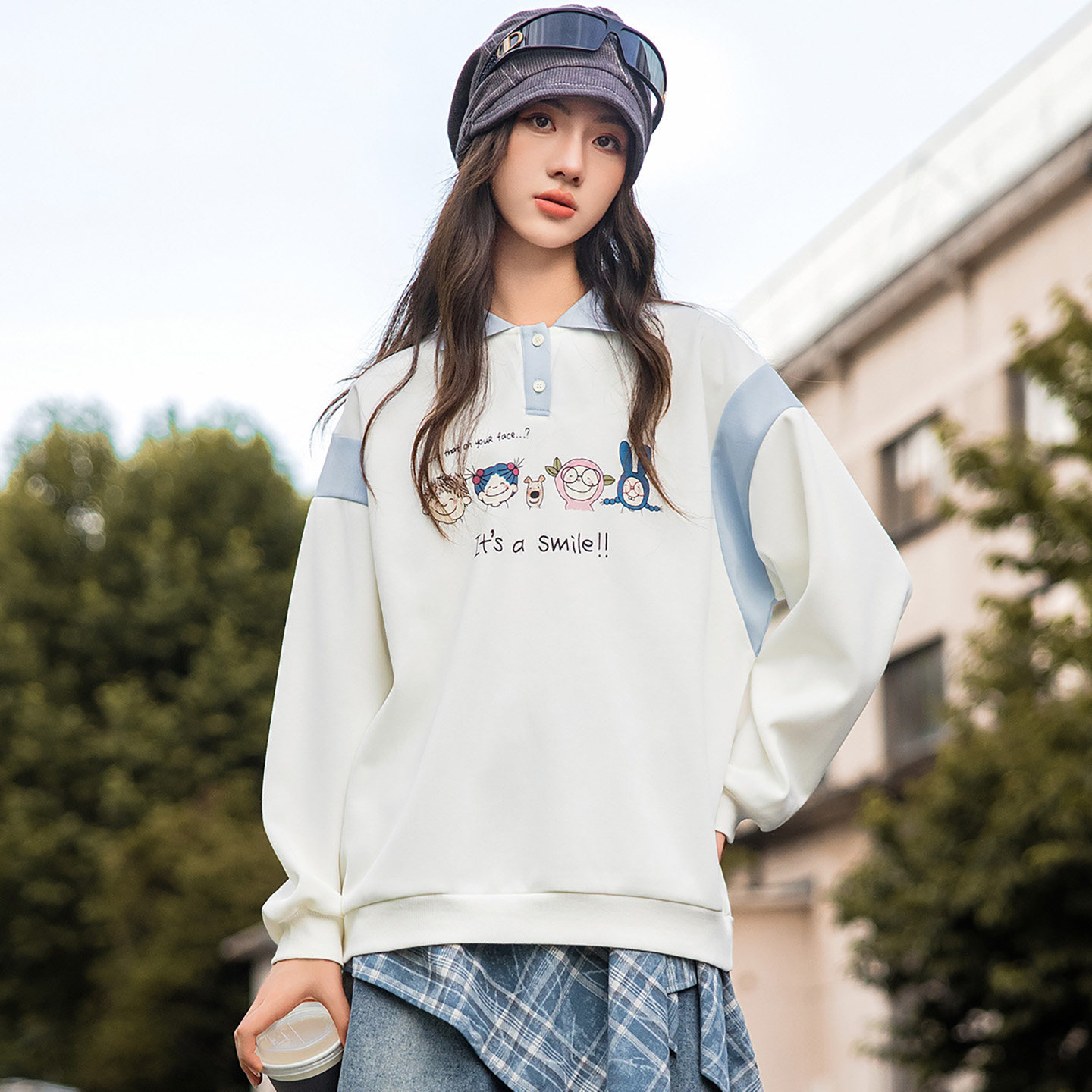 女大童插肩袖翻领卫衣春秋款2025新款初高中生女孩青少年秋装上衣