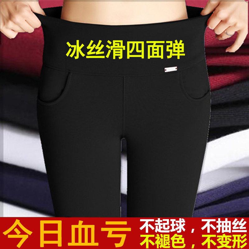 春秋黑色外穿高腰铅笔打底裤九分夏薄款弹力妈妈大码女显瘦长裤子