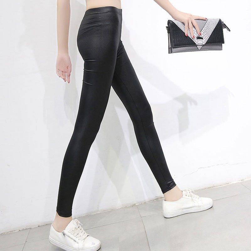 仿皮打底裤女外穿初秋新款黑色薄款皮裤显瘦弹力小脚长裤紧身大码