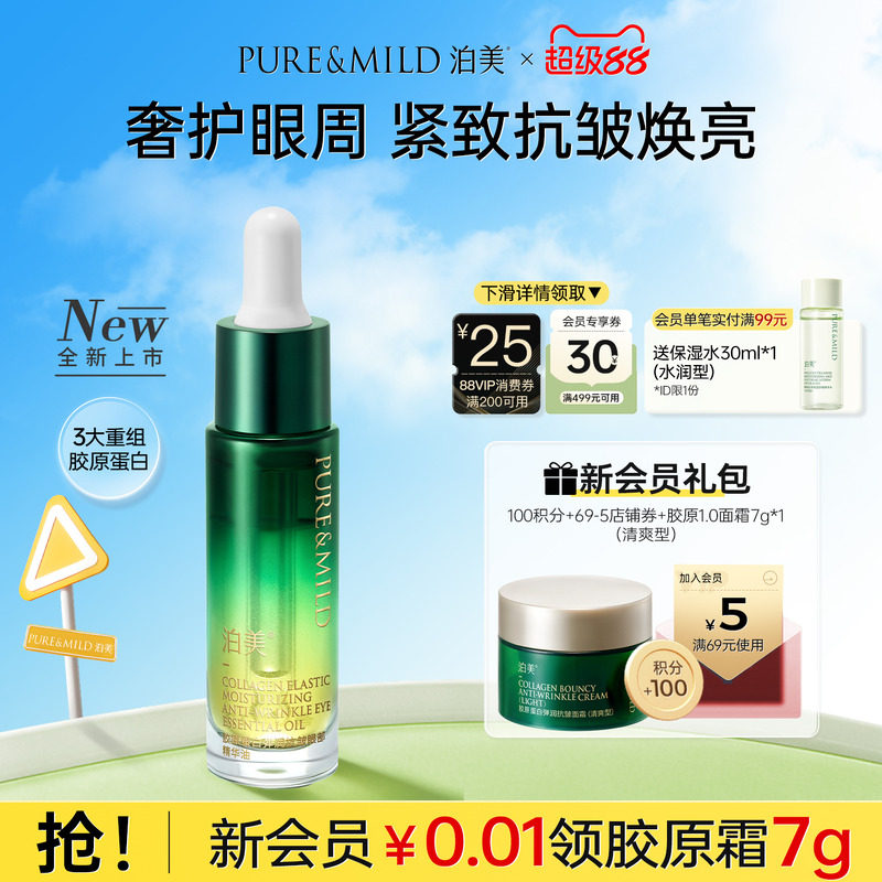 泊美胶原眼部精华油保湿紧致抗皱眼油淡化细纹黑眼圈眼霜官方正品