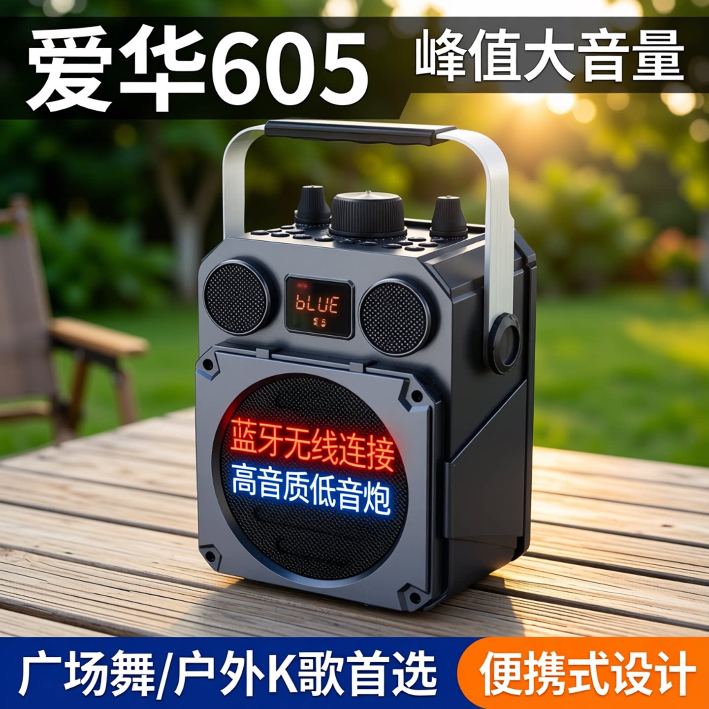 爱华605户外便携音响峰值大音量高音质蓝牙音箱唱歌广场舞低音炮