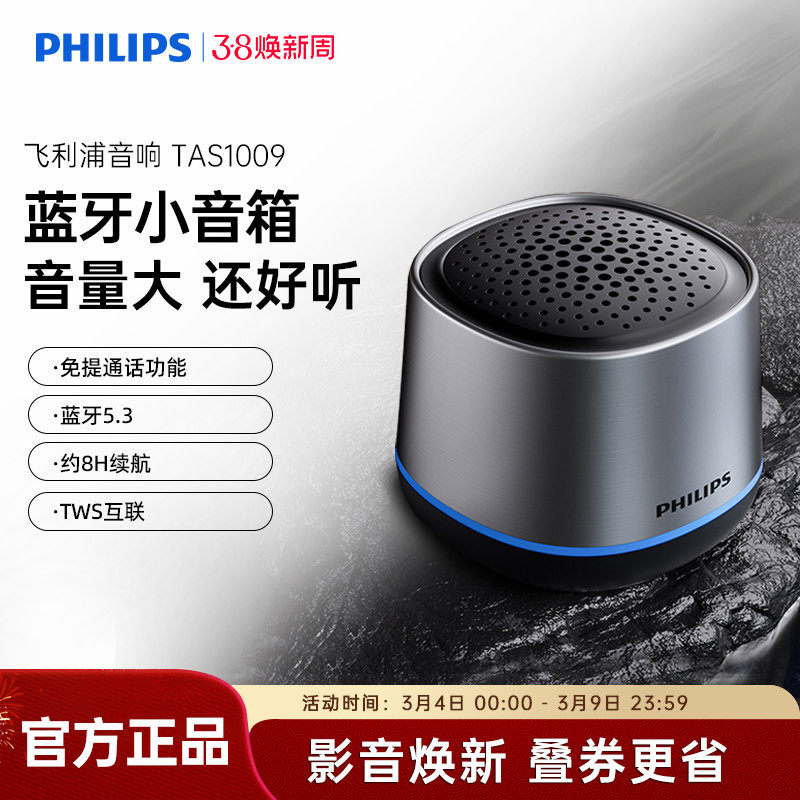 飞利浦TAS1009无线蓝牙便携式家用户外音响桌面低音炮迷你小音箱