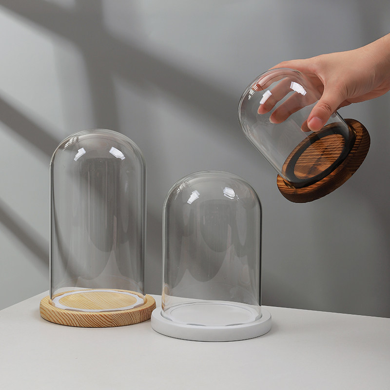 永生花玻璃罩展示盒 桌面摆件diy装饰干花透明手办玻璃罩子防尘罩