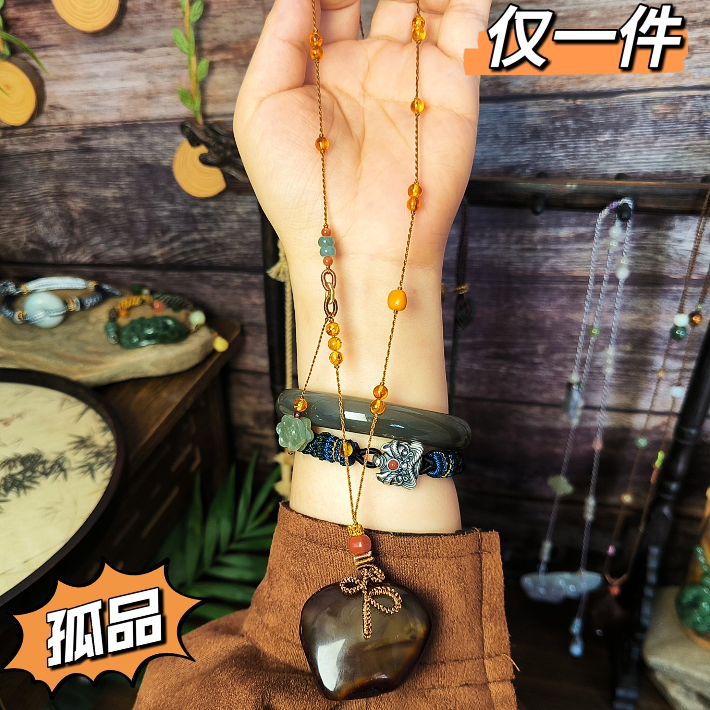 孤品一物一图原创天然琥珀蜜蜡吊坠挂件多宝项链毛衣链女款带证书