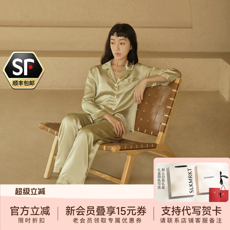 SLKMRKT乃丝 真丝睡衣睡裤女100%桑蚕丝家居服高档19姆米夏季套装