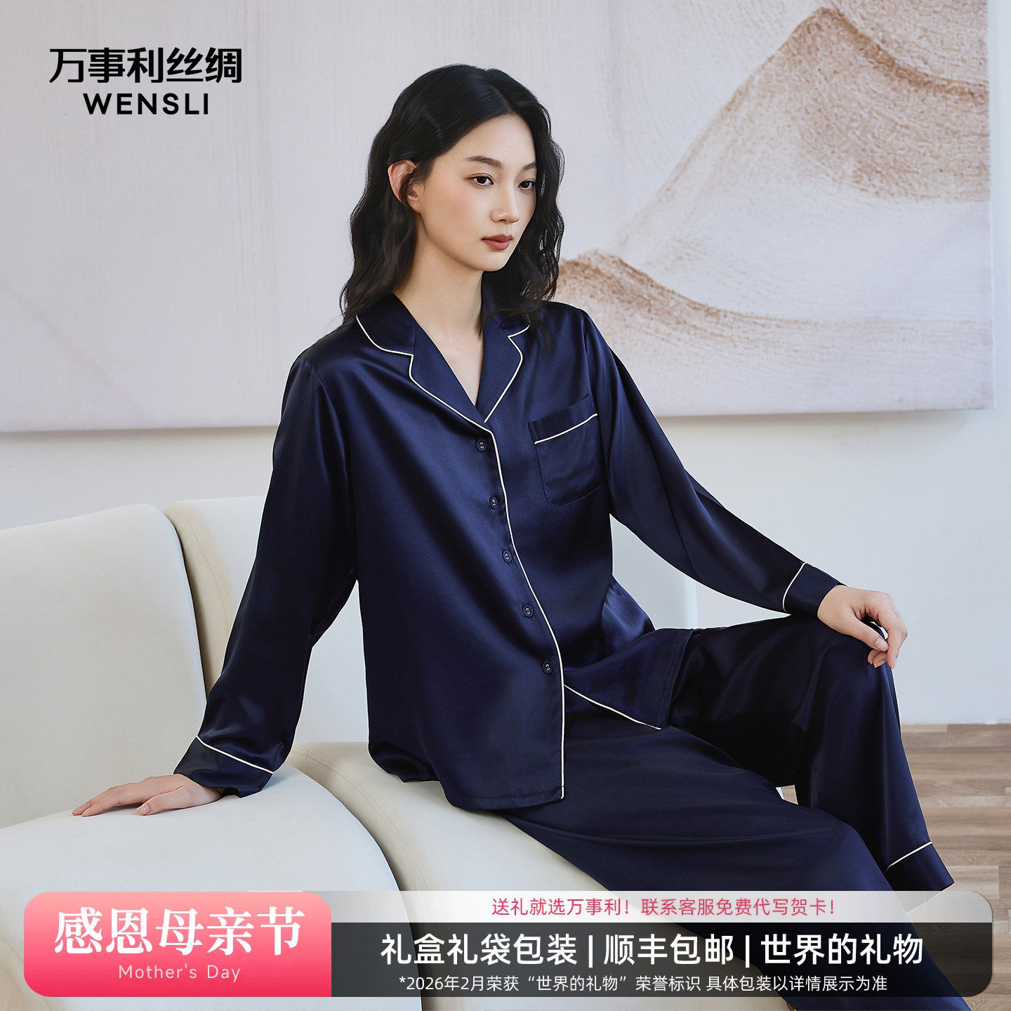 - 桑蚕丝睡衣套装女