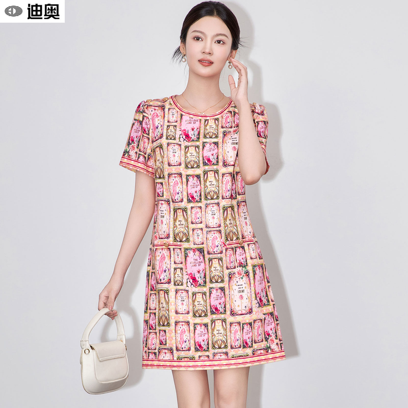 迪奥夏季短袖印花连衣裙女2026新款复古气质名媛风优雅显瘦A字裙