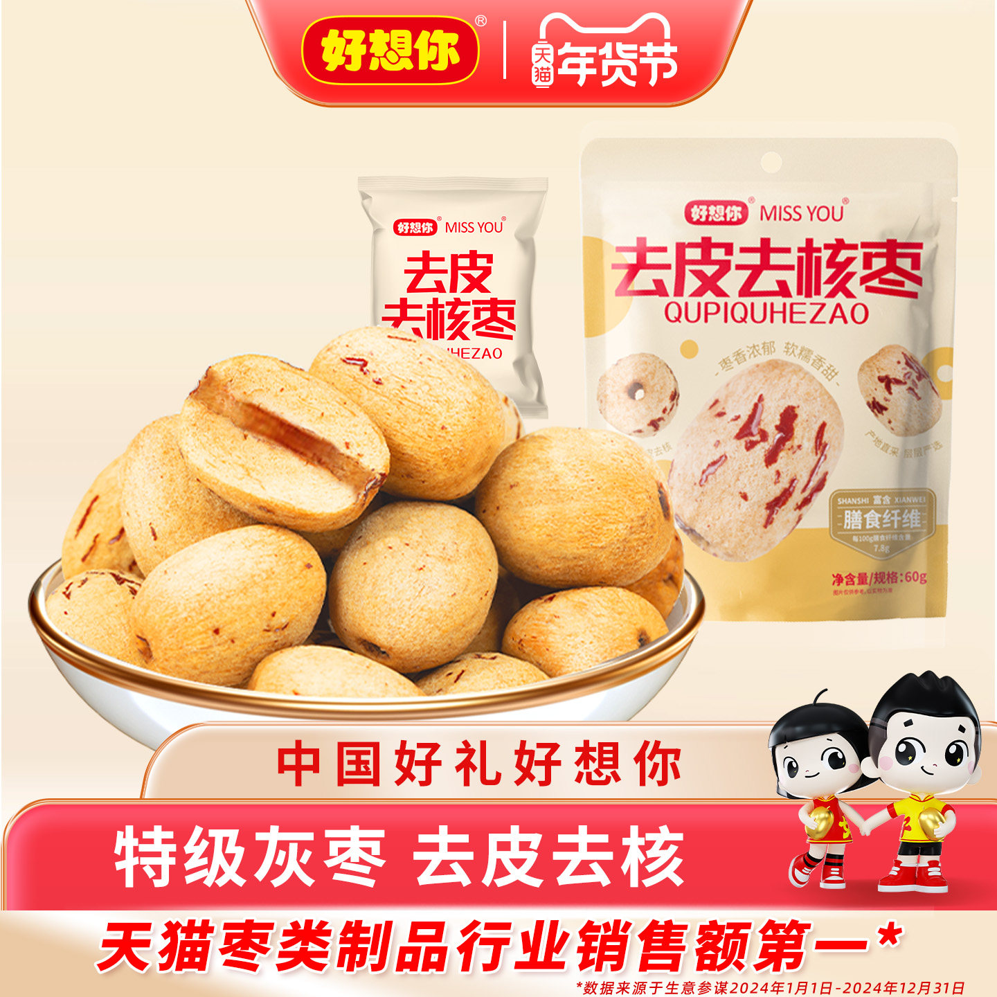 好想你特级去皮去核红枣新疆特产大枣子灰枣无皮无核脱皮糯枣打浆