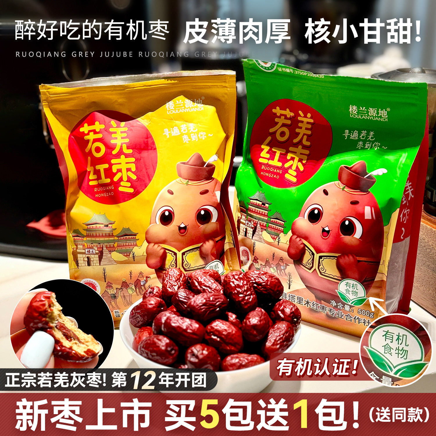 开团第12年!正宗新疆若羌灰枣有机红枣特级大枣子皮薄肉厚核小