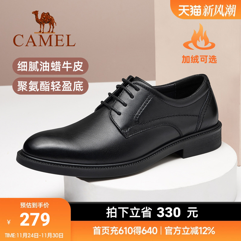 骆驼2024秋季新款舒适软底系带经典商务休闲德比皮鞋男结婚新郎