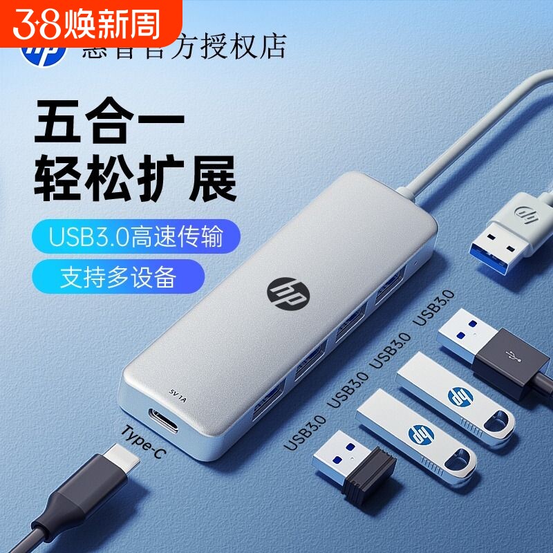 HP惠普拓展坞usb接口扩展器插头多口typec拓展坞集线器分线器转接头延长线hub转换器多功能笔记本电脑平板u盘