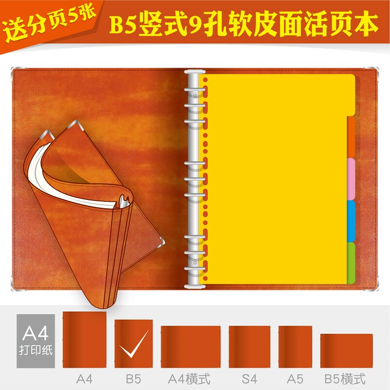 【双色棕】9孔B5加厚大容量软皮面可拆卸活页笔记本记事本文具方
