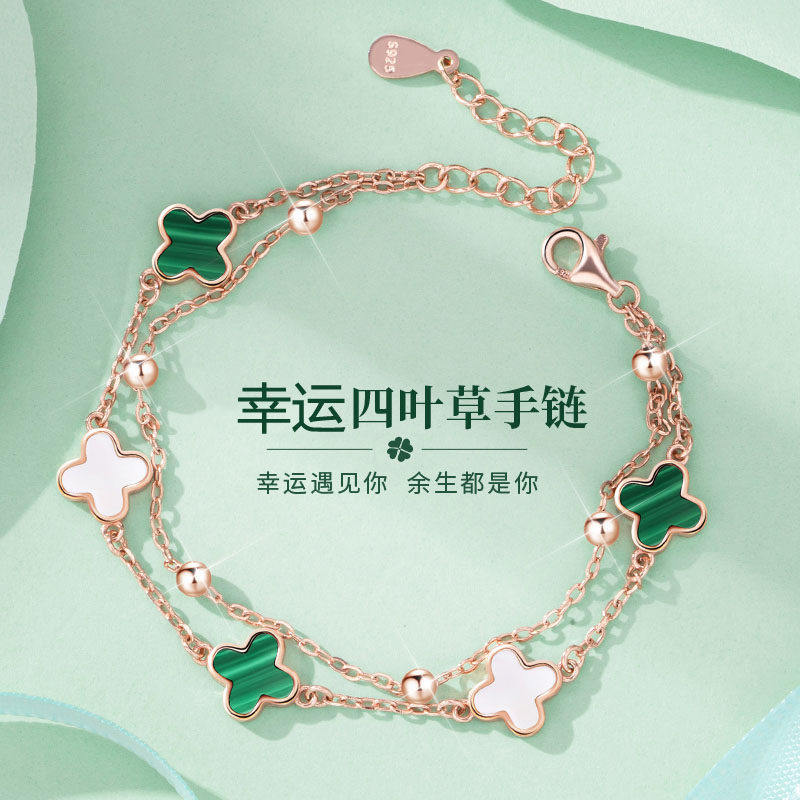 仙女风双层四叶草手链女生轻奢小众设计高级感纯银送闺蜜生日礼物