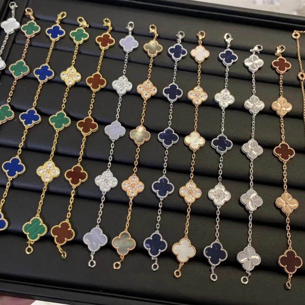顶版18K金红玉髓白贝五花四叶草手链女轻奢首饰叠戴百搭幸运手饰