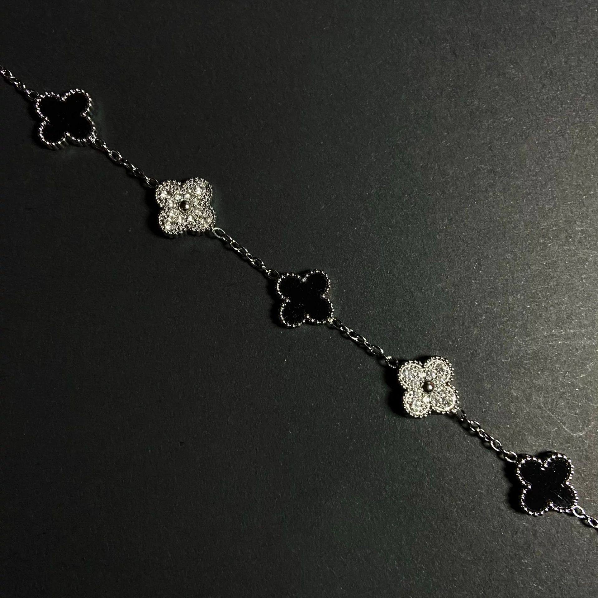 四叶草手链女轻奢高级小众设计花朵锆石百搭黑白熊猫情侣闺蜜饰品