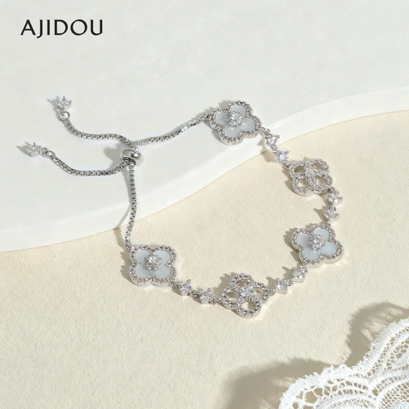 AJIDOU阿吉豆设计师幸运四叶草手链女款秋冬送女友轻奢小众手饰品