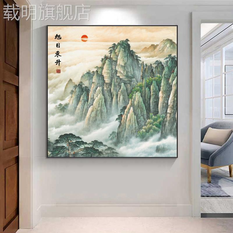 中式靠山图泰山日出装饰画入户玄关过道旭日东升挂画招财风水壁画